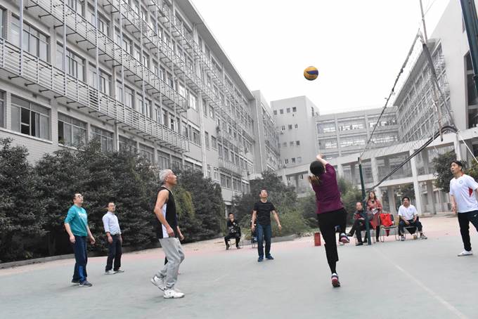 11月9日下午,阳光煦暖,和风轻松,特种功能材料重点实验室大楼后排球场热闹非凡,实验室师生混合排球赛第三阶段比赛在此进行。本阶段两场比赛分别是A组对C组,B组对D组。C组种子选手武四新教授虽出差在外,但另一名实力选手赵伟利教授强势回归,带领本组继续征战,并先下一城。但以杜祖亮教授为核心的A组实力强劲,技战术合理有效,队员发挥稳定,最终以2:1战胜C组。在随后进行的第二场比赛中,B组虽整体实力较弱,但临时引进了几位强大外援,最终战胜D组,取得3分。