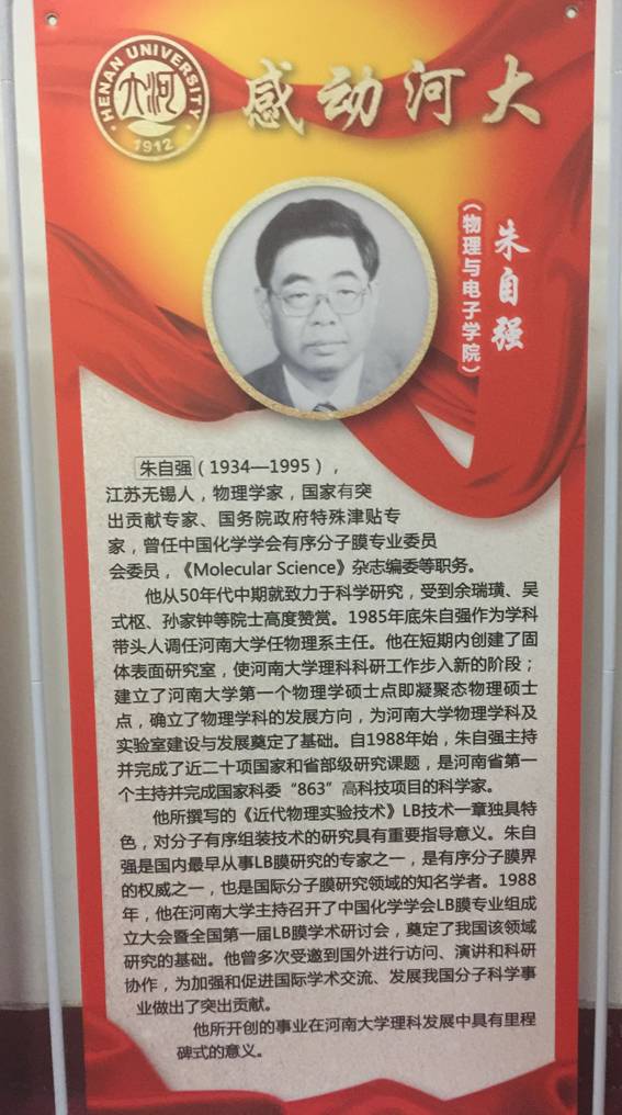 朱自强先生(1934-1995),物理学家, 1934年10月23日出生于上海。必赢565net官网教授、原物理系系主任、国家有突出贡献专家、河南省优秀专家、中国化学学会永久会员、中国化学学会有序分子膜专业委员会委员、河南省物理学会副理事长、河南省光学学会副理事长、河南省红外研究会总顾问、《Molecular Science》杂志编委、研究生导师。