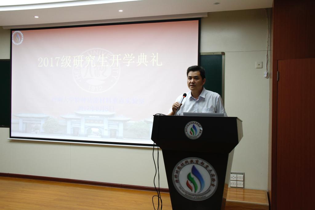 2017年9月8日下午,在庄严的国歌声中,特种功能材料重点实验室2017级研究生开学典礼在二楼报告厅隆重举行。重点科研机构党委书记张霖、副书记孔令刚,实验室副主任白锋、胡彬彬,课题组组长和特聘教授代表、青年教师代表、高年级研究生代表与会。典礼由孔令刚主持。