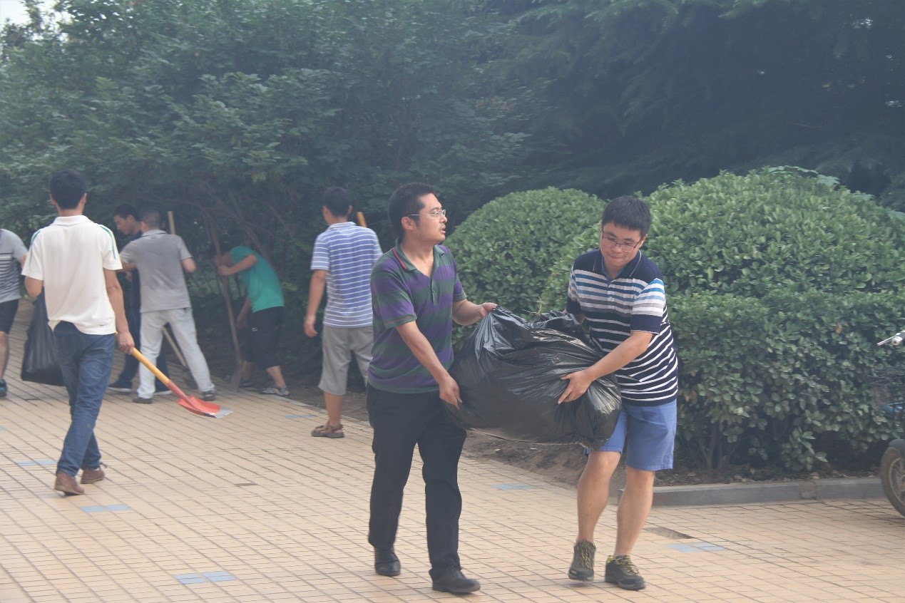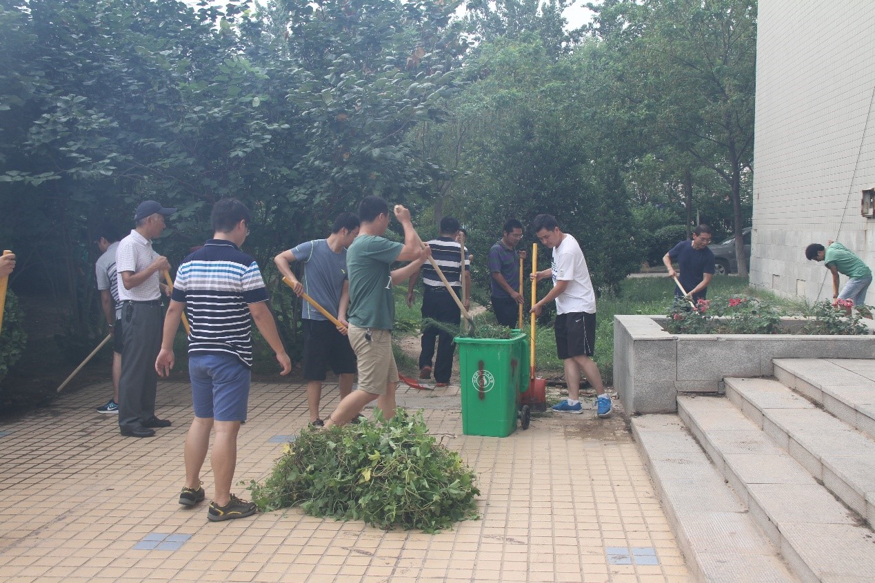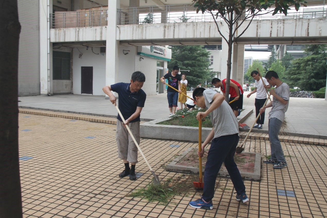 开封市国家卫生城市复审、全国文明城市创建工作,公司申报首届全国文明校园工作均已进入到关键阶段,环境卫生是其中的重要内容。因此,实验室师生轮流值日,每天坚持打扫卫生,做好保洁维护。在此基础上,7月17日下午,在重点科研机构党委书记张霖、实验室常务副主任杜祖亮带领下,实验室全体师生针对卫生死角,开展专项校园清洁活动。