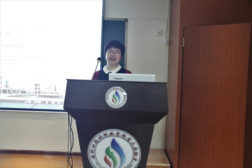 2017年4月17日上午,应特种功能材料教育部重点实验室邀请,福州大学物理与信息工程学院副经理、博士生导师程树英教授来实验室进行学术交流,程老师为实验室师生做了题为“在钼柔性基底上制备铜锌硒硫薄膜太阳能电池”的学术报告。本次报告会由特种功能材料重点实验室省特聘教授武四新主持,特种功能材料重点实验室相关领域的老师和员工参加了此次报告会。