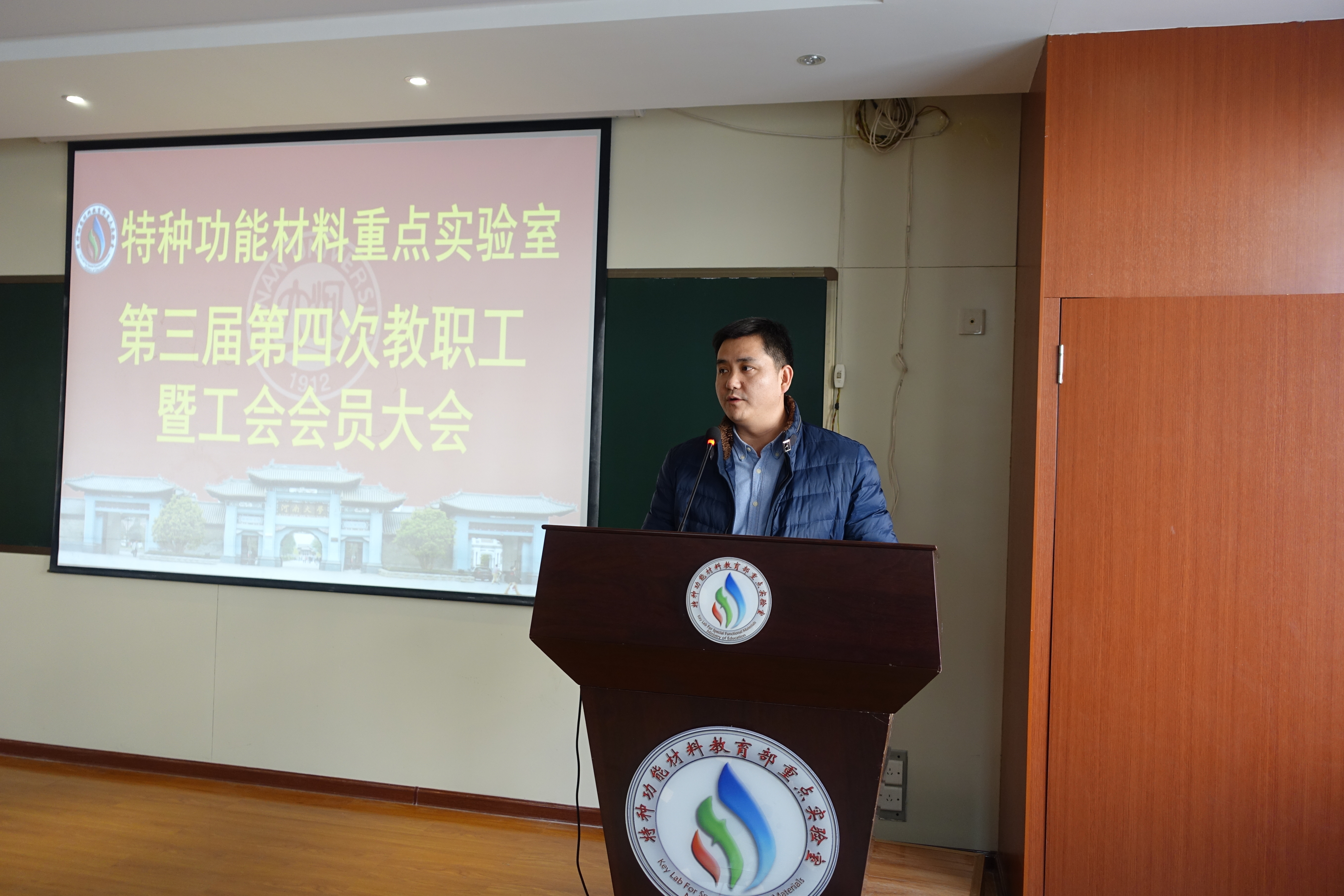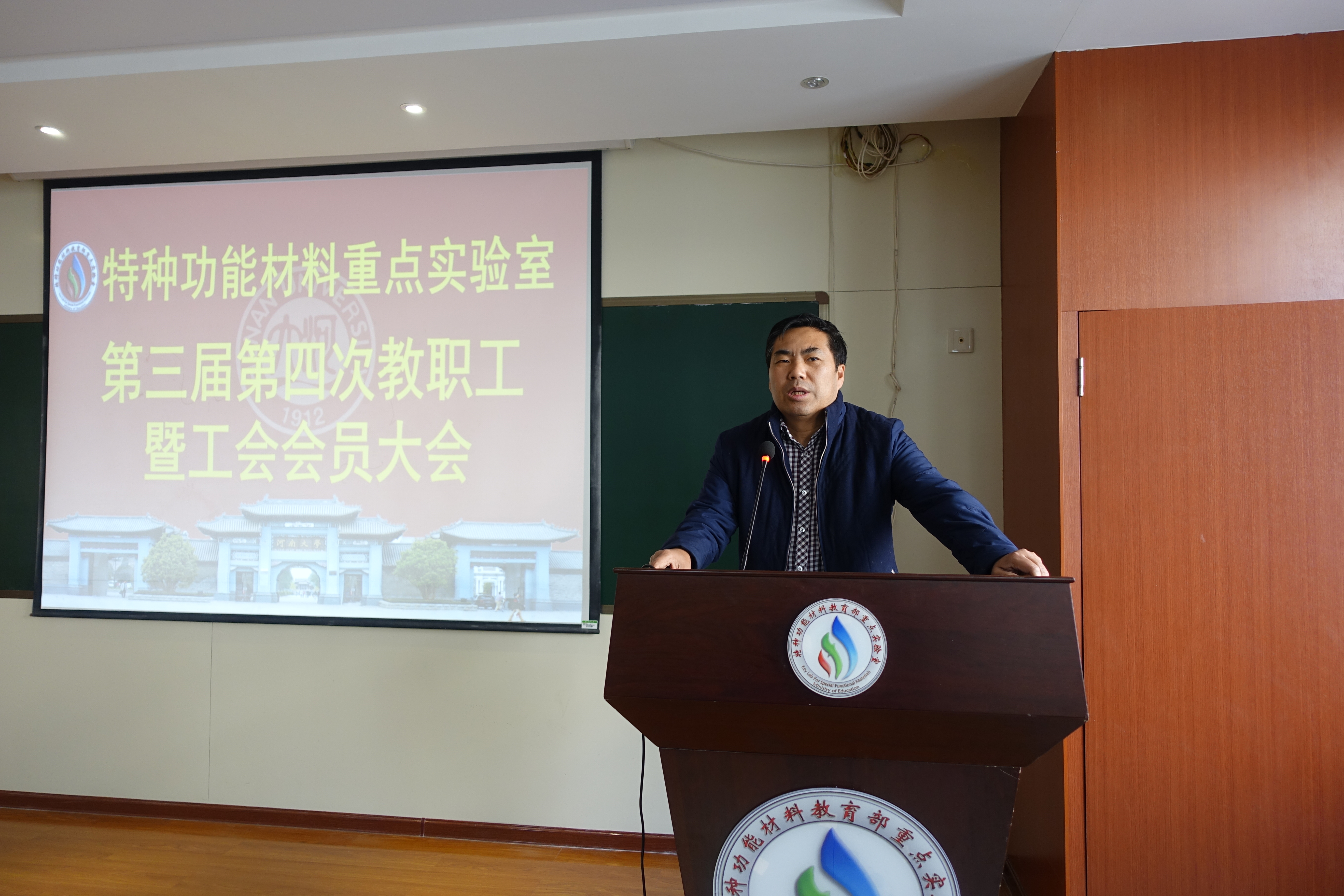 经过精心筹备,2017年1月13日,在雄壮的国歌声中,特种功能材料重点实验室三届四次教职工暨工会会员大会在二楼报告厅隆重开幕,全体教职工和工会会员与会。大会由重点科研机构党委副书记孔令刚主持。