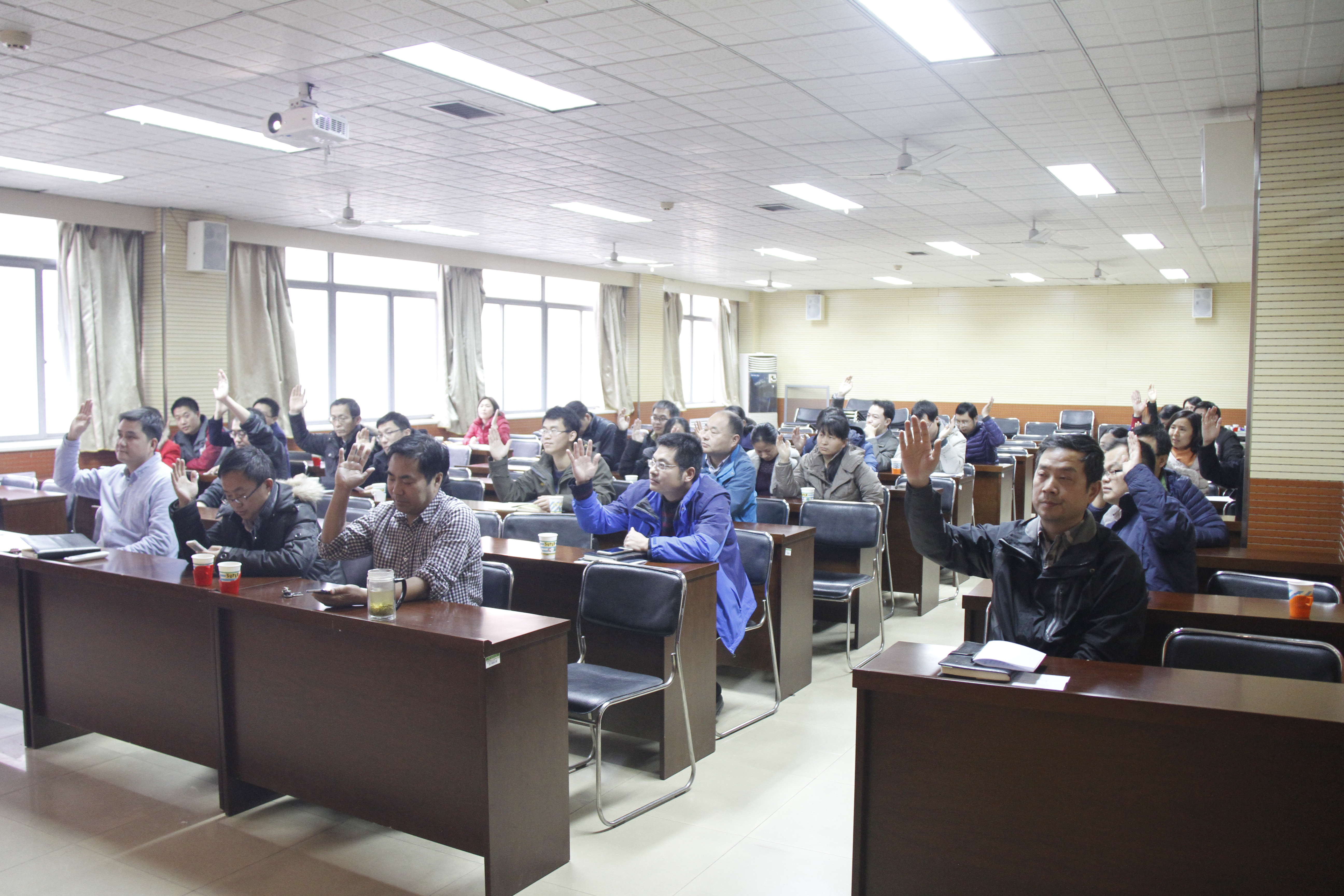 会议进入第二阶段。胡彬彬向大会通报了各小组的讨论和审议情况,并对大家提出的问题进行了集中反馈。全体人员通过举手表决,一致通过了会议宣读的三个报告。